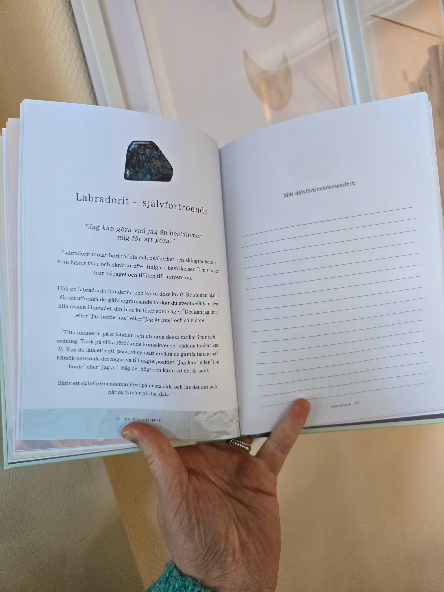 Min kristalldagbok är din personliga guide till hur du lär dig att dra nytta av kristallernas naturliga krafter. Arbeta med tjugo olika kristaller och deras unika egenskaper och kännetecken för att finna balans och harmoni i din vardag. Med hjälp av bokens sidor för dagboksanteckningar och frågor får du möjlighet att reflektera kring hur kristallerna kan hjälpa och påverka just dig.