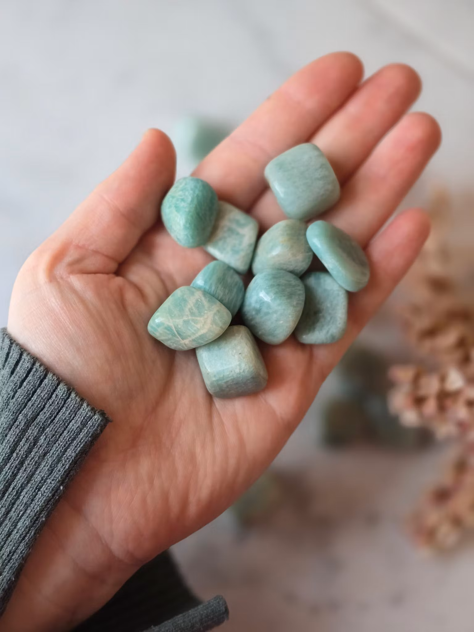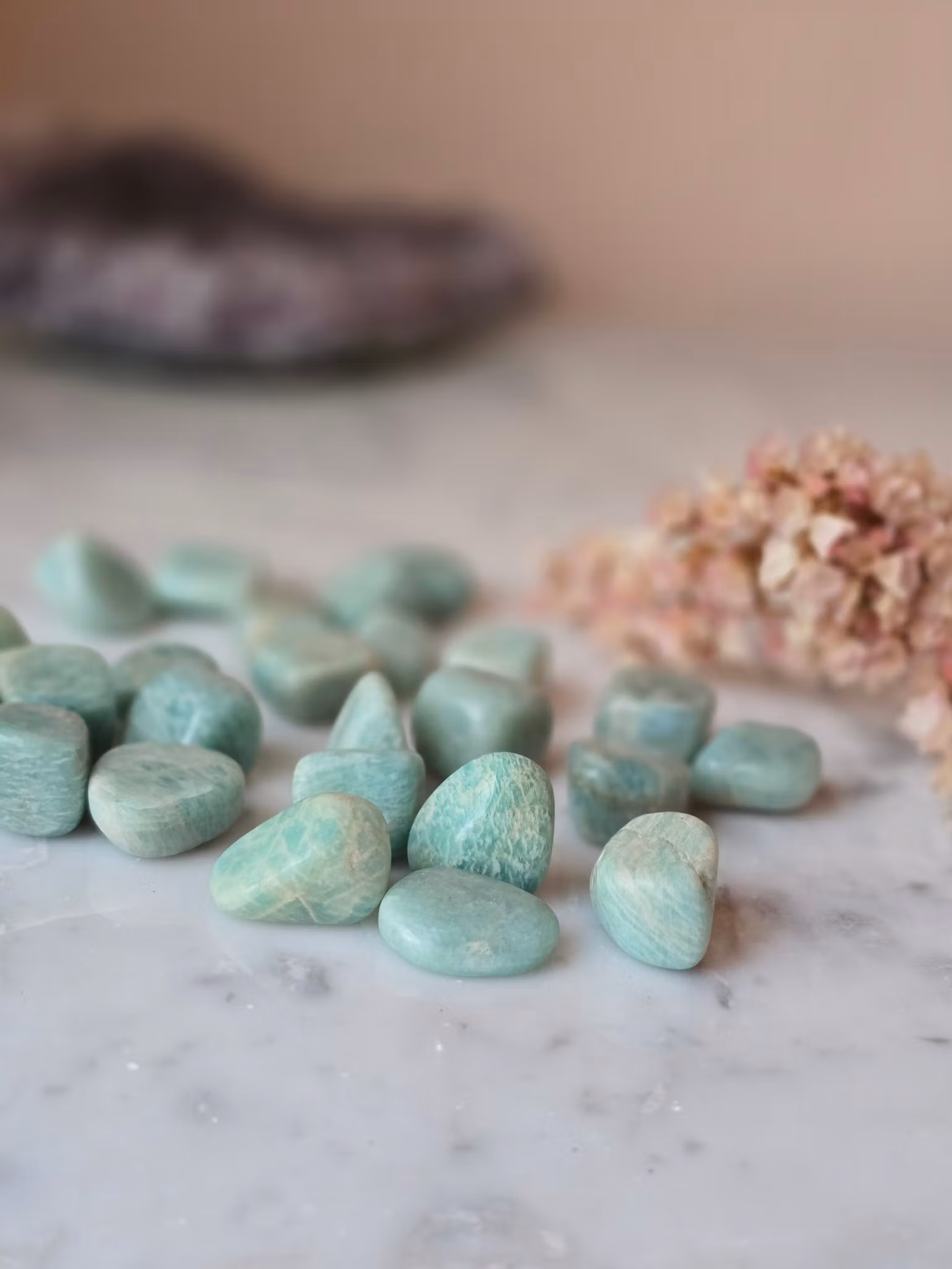 Amazonit motar bort negativ energi. Har du ett företag hjälper den dig att kommunicera din passion. Den sägs även se till att du befinner dig på rätt plats vid rätt tidpunkt då den jobbar i samklang med universums energier.