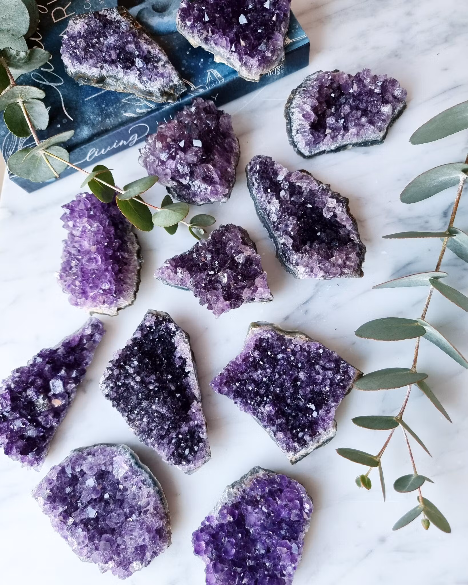 Ametist sägs bringa lugna och harmoniska energier. Den kan hjälpa oss att släppa stress, öppnar upp vårt intuition och vårt tredje öga. Den sägs även hjälpa oss till bättre sömn och lindra spänningshuvudvärk. Den kan vara skön att lägga i pannan på tredje ögat för en stunds vila. Månadssten: Februari
