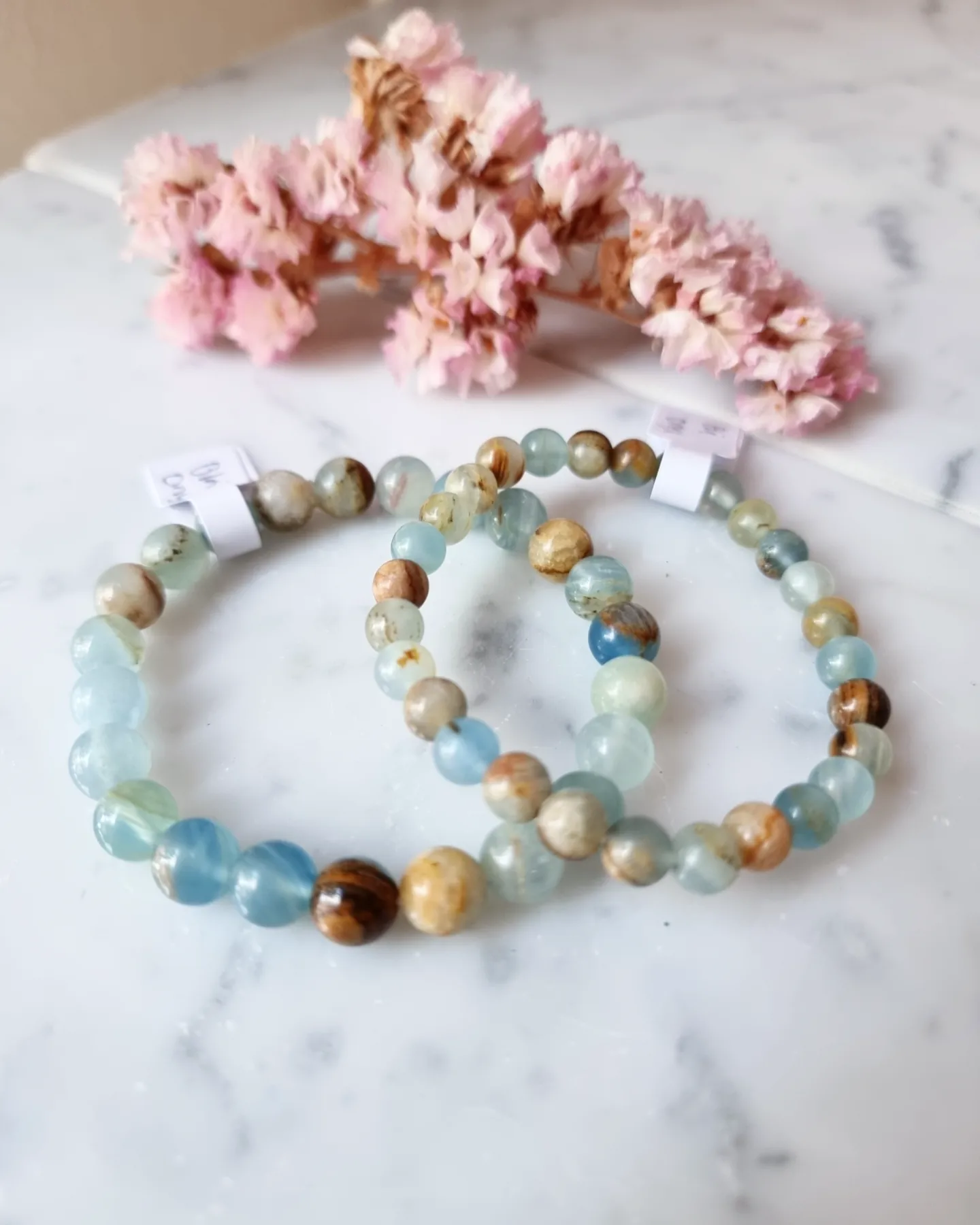 Armband med pärlor av blå onyx, 6mm eller 8mm pärlor, tillverkade av Julia ♡
