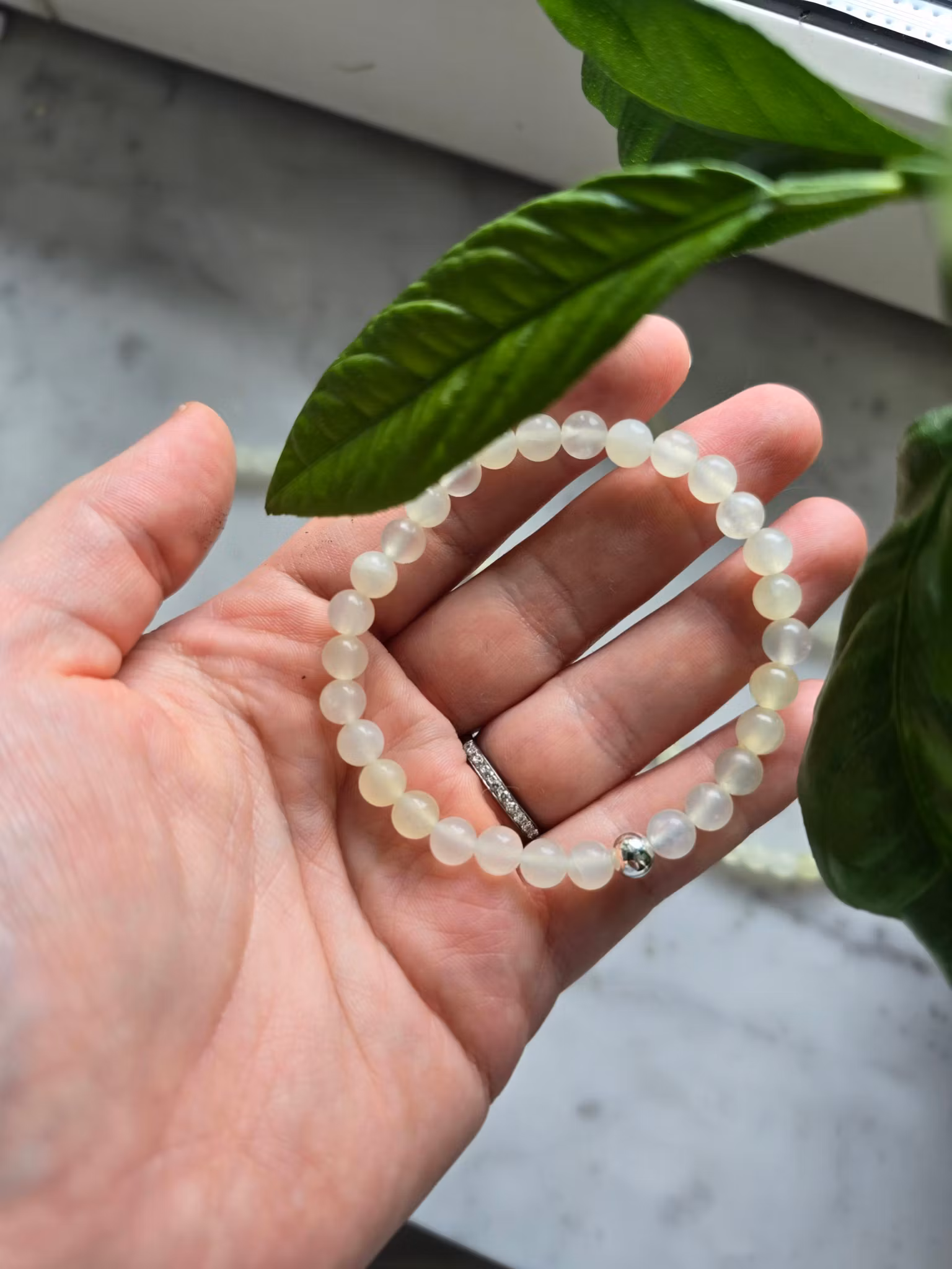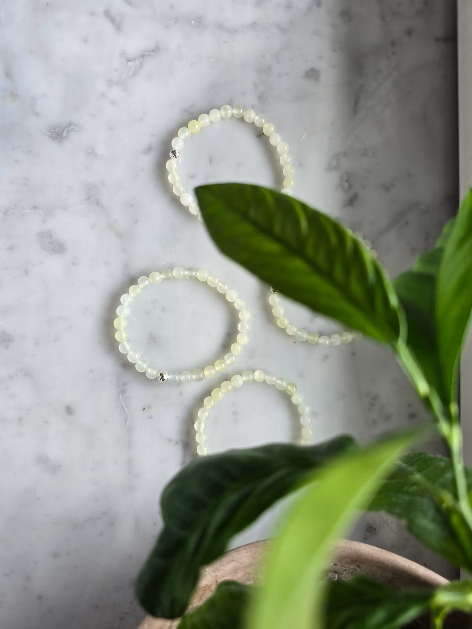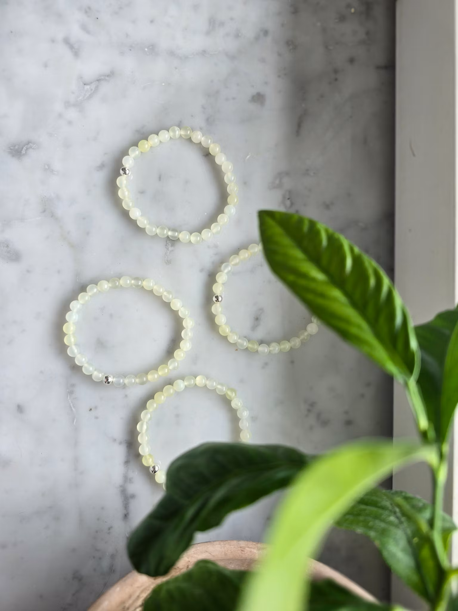Armband med ljusa 6mm pärlor i ny jade samt pärla i äkta silver