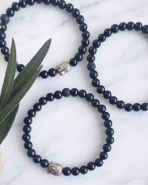 Handgjort armband med 6mm pärlor i svart obsidian & 1 lavastenspärla som är perfekt att droppa lite parfym eller eterisk olja på under dagen.