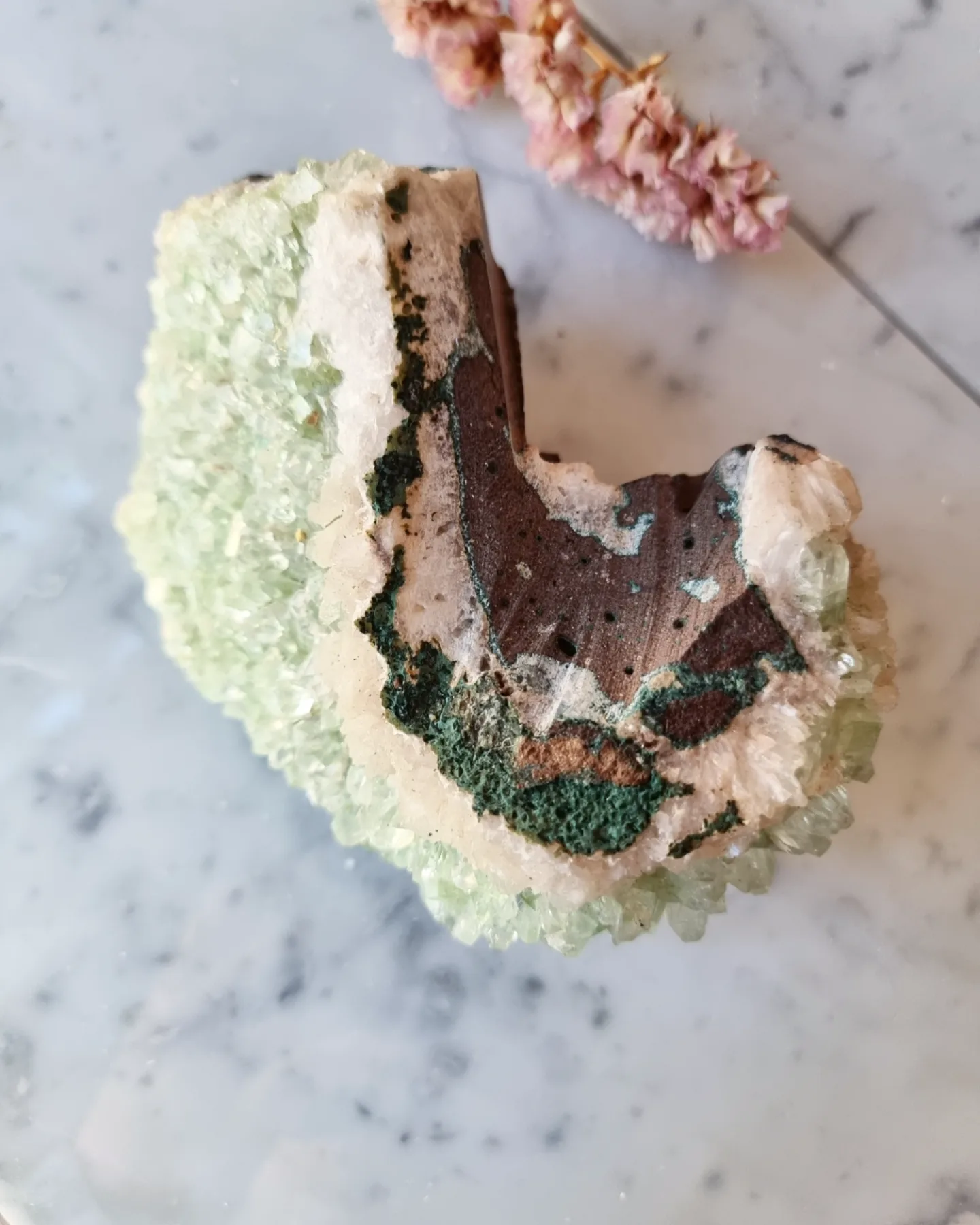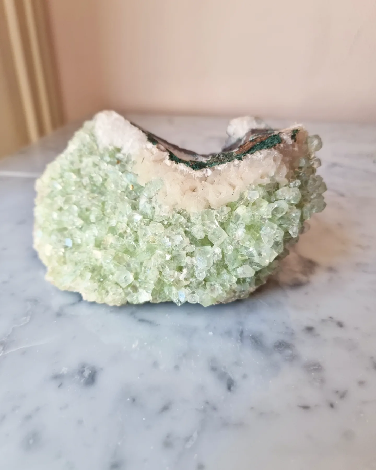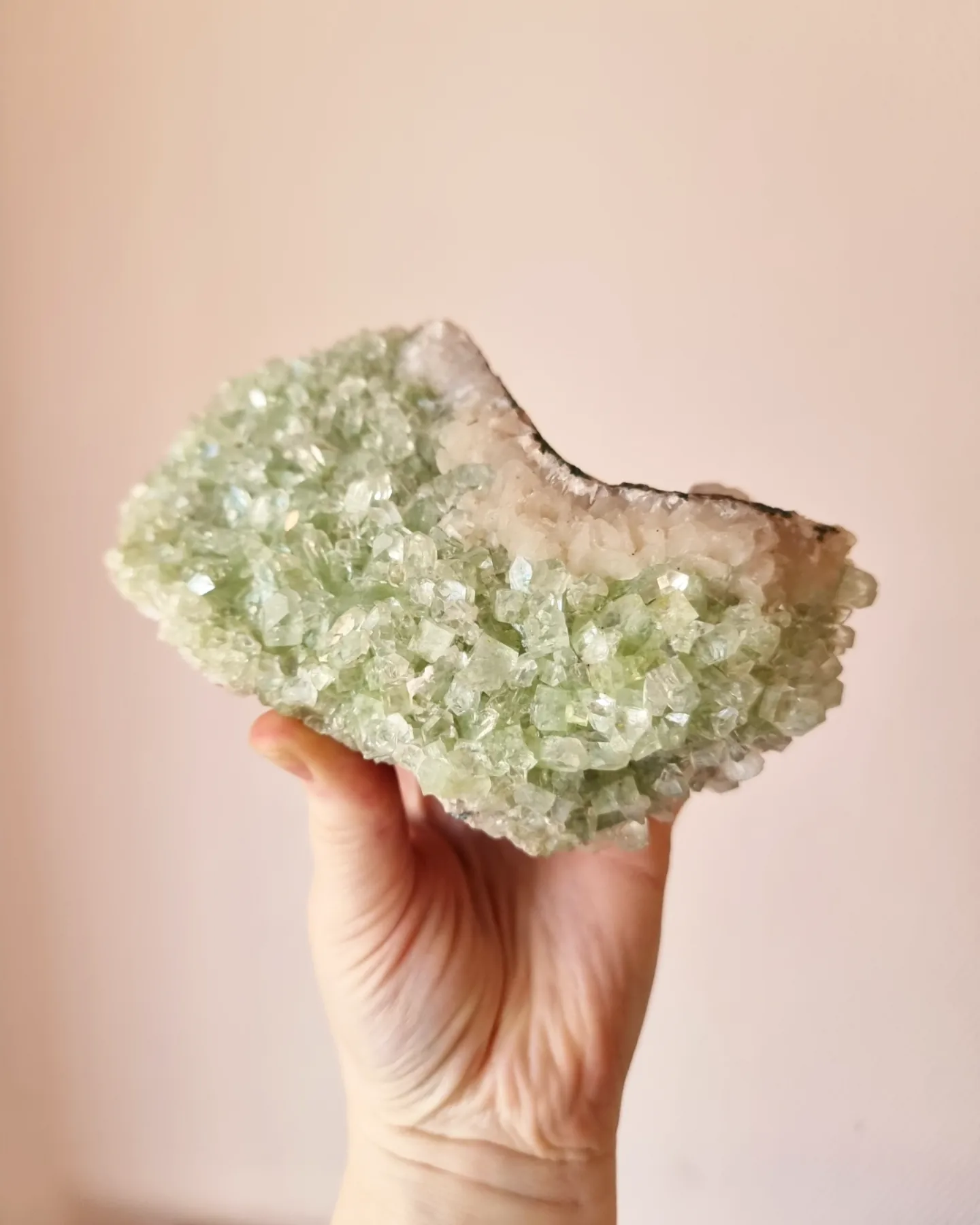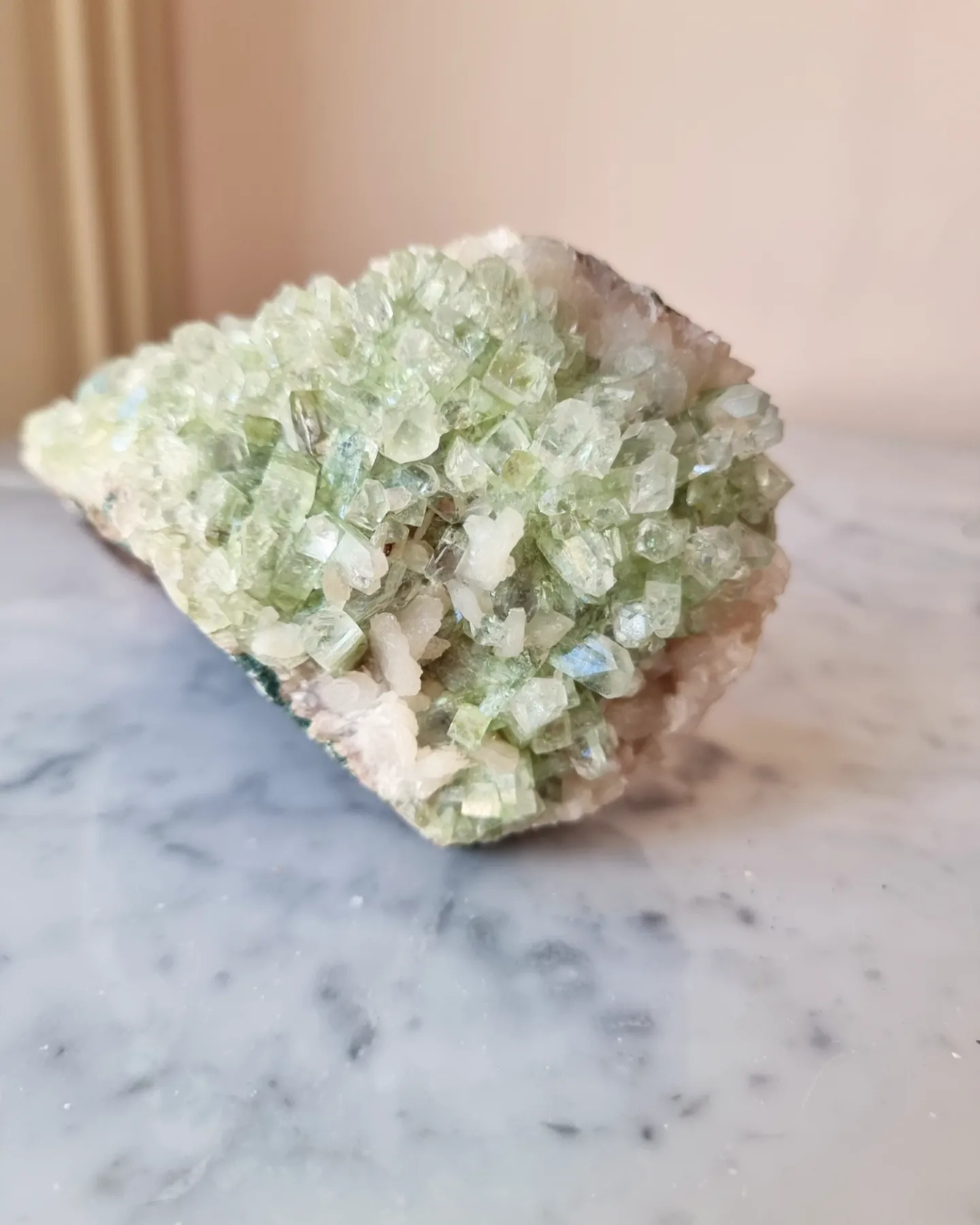 Ett otroligt kluster i grön Apofyllit, kvalitén på detta är helt magiskt!