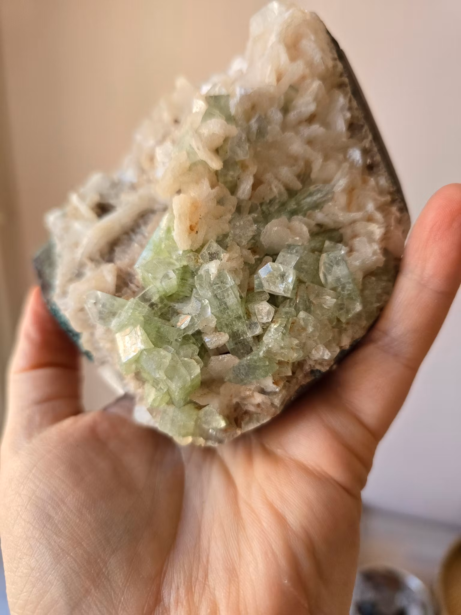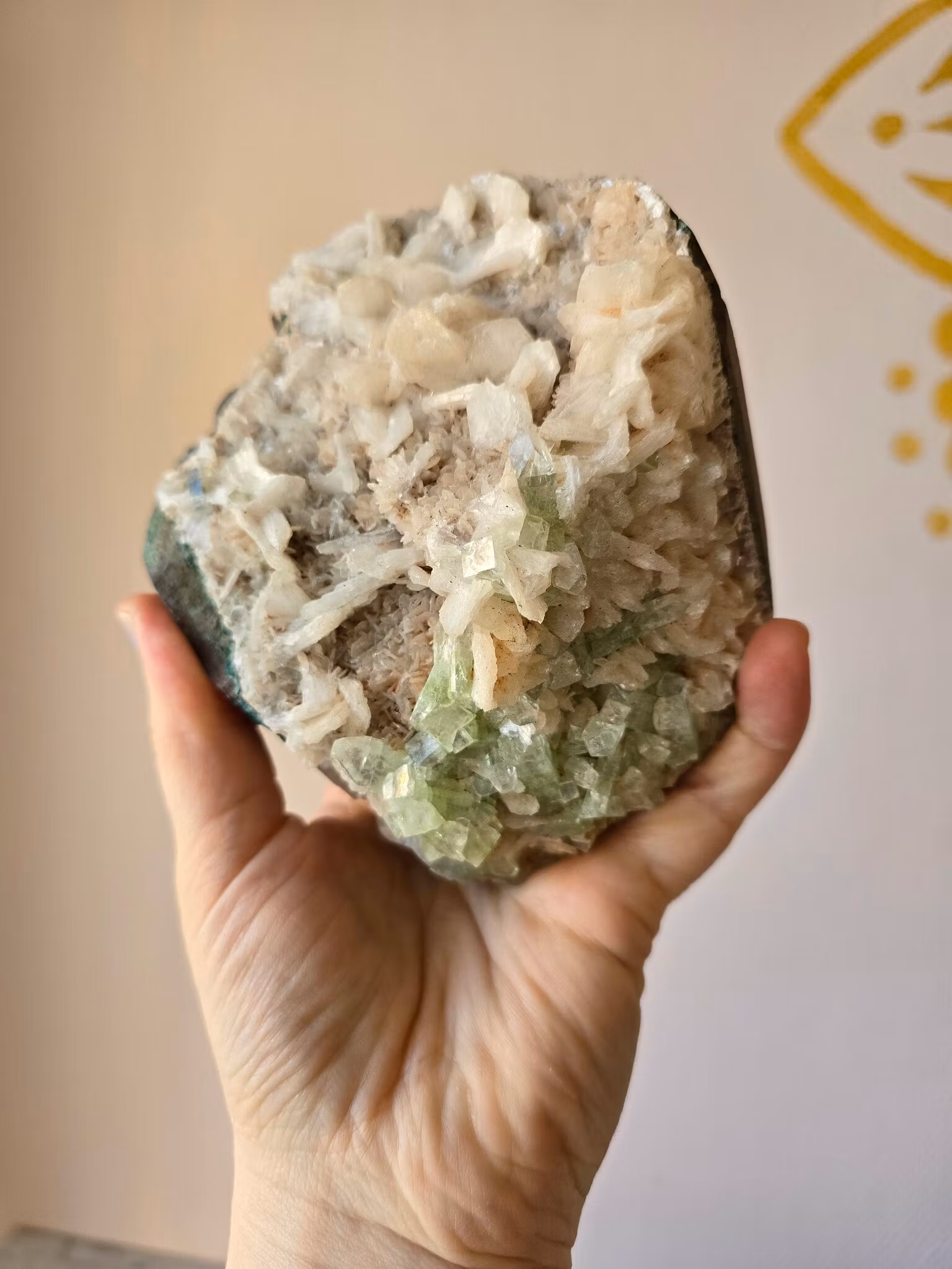 Otroligt vackert kluster med grön apofyllit & stilbit. Magi direkt från moder jord.