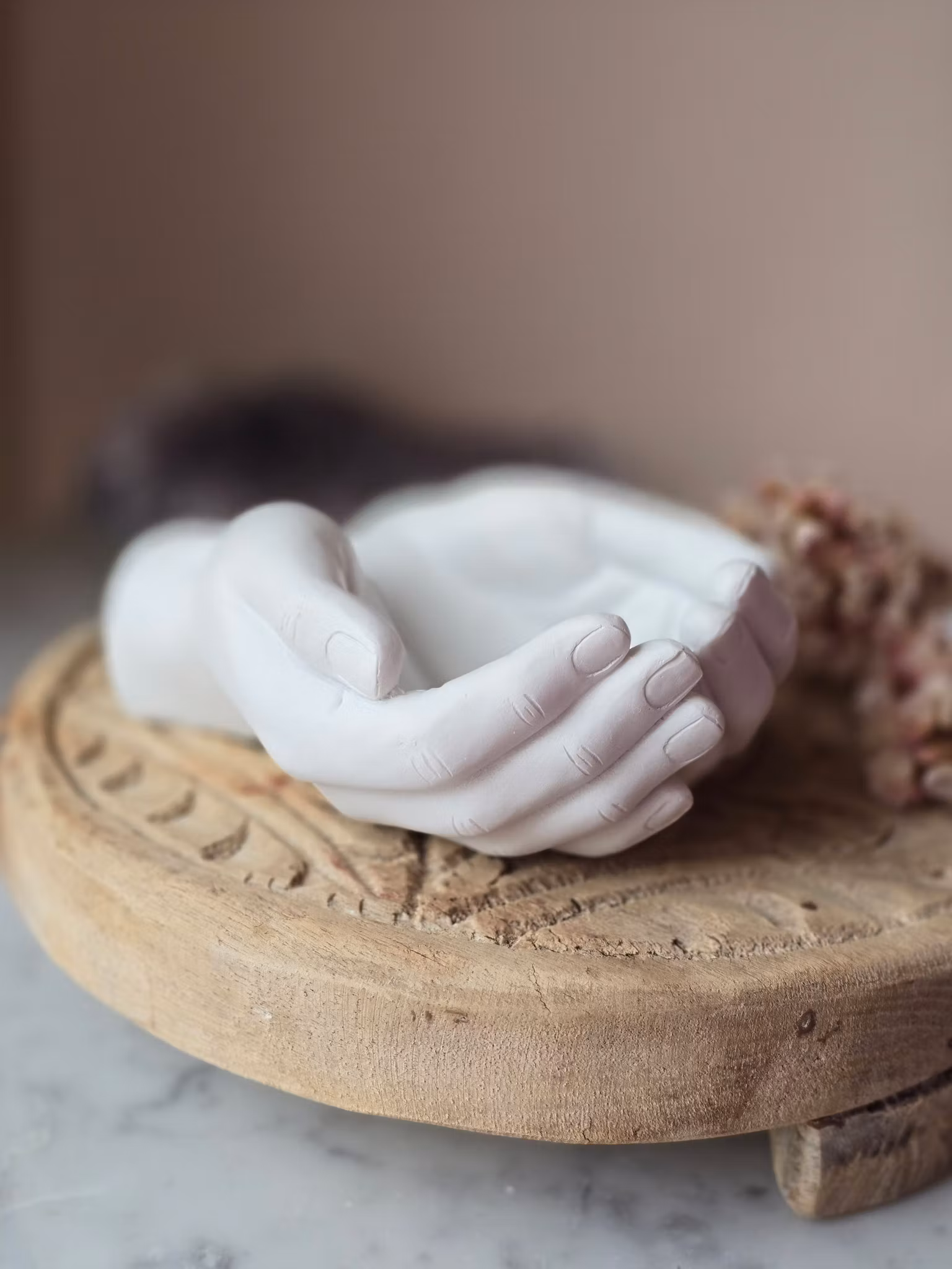 Kupade händer, stor skål / klothållare ca 13.5cm 225 kr Tyvärr är denna produkten slutsåld, bevaka gärna så får du ett mail när/om produkten finns i lager igen. Produktbeskrivning & mer information Recensioner Vacker skål med kupade händerStorlek ca 13.5cm