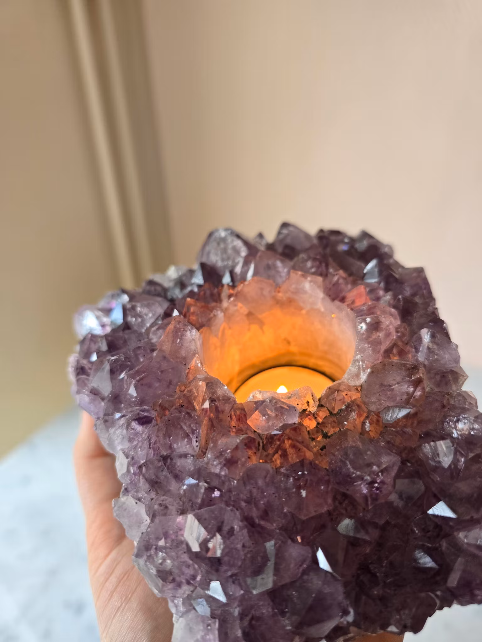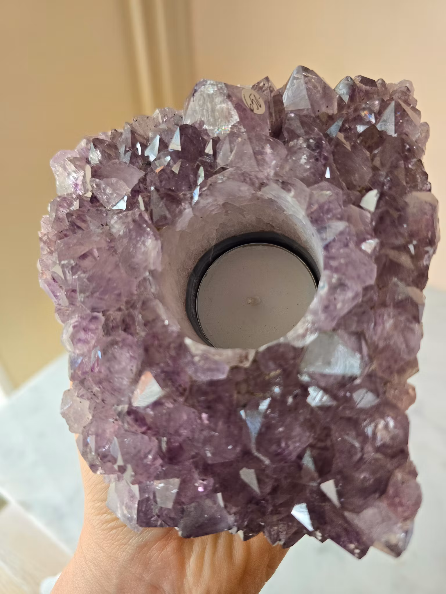 Ljuslykta, ametistkluster nr 111 650 kr Tyvärr är denna produkten slutsåld, bevaka gärna så får du ett mail när/om produkten finns i lager igen. Produktbeskrivning & mer information Recensioner Otroligt vacker ljuslykta i ametist.Den på bilden är den du köper ♡