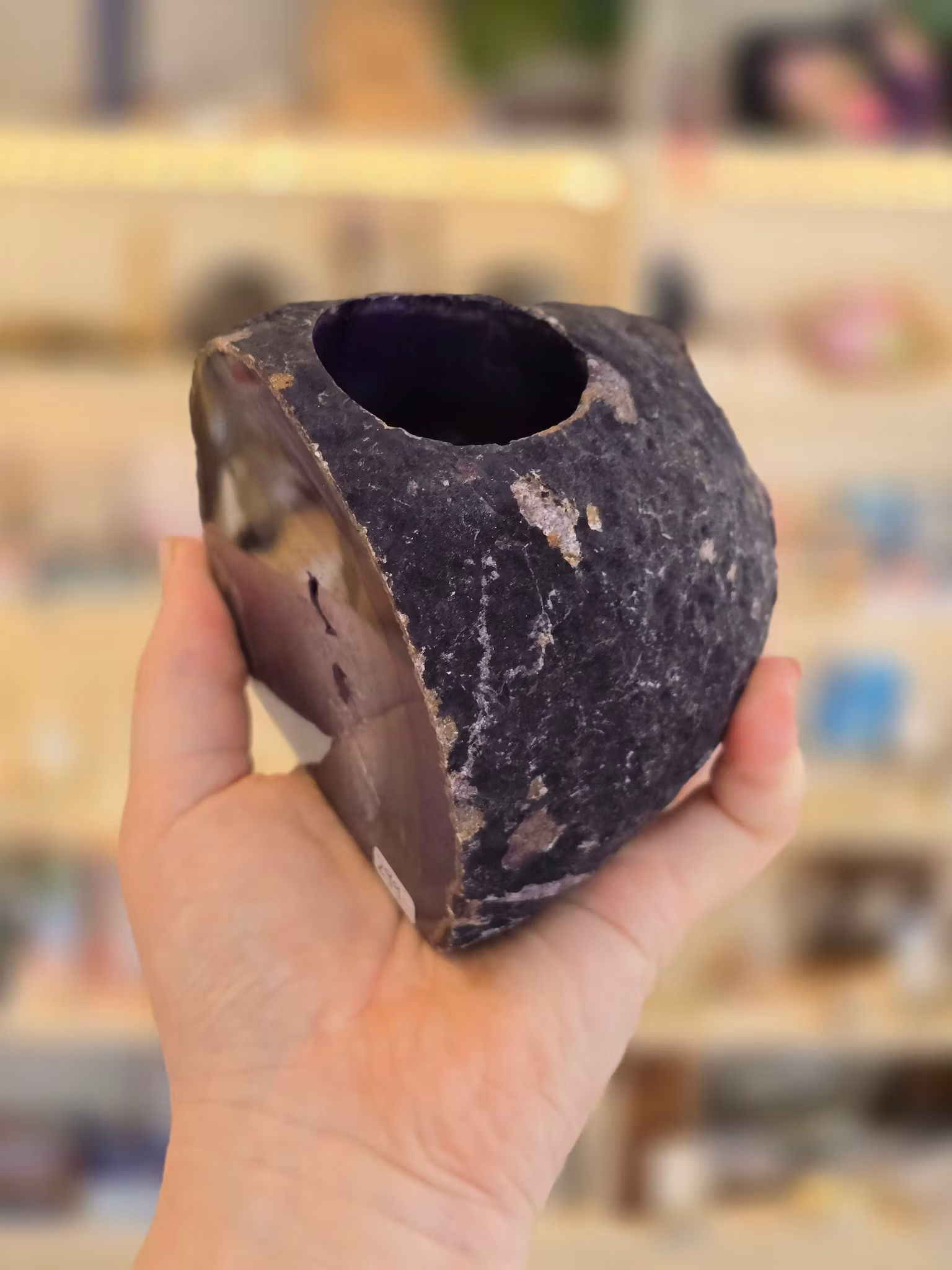 Superfin ljuslykta i agat, infärgad lila.
