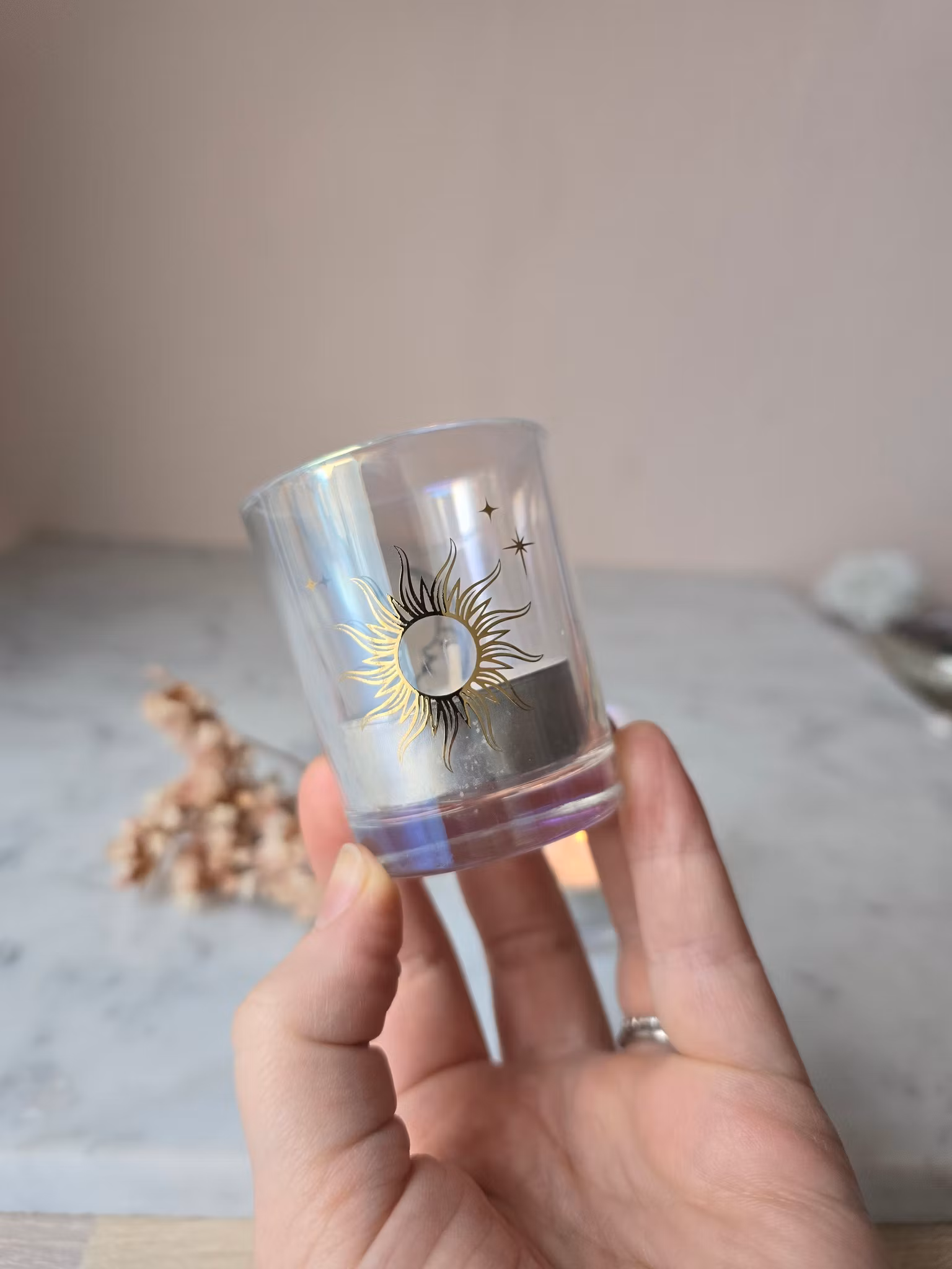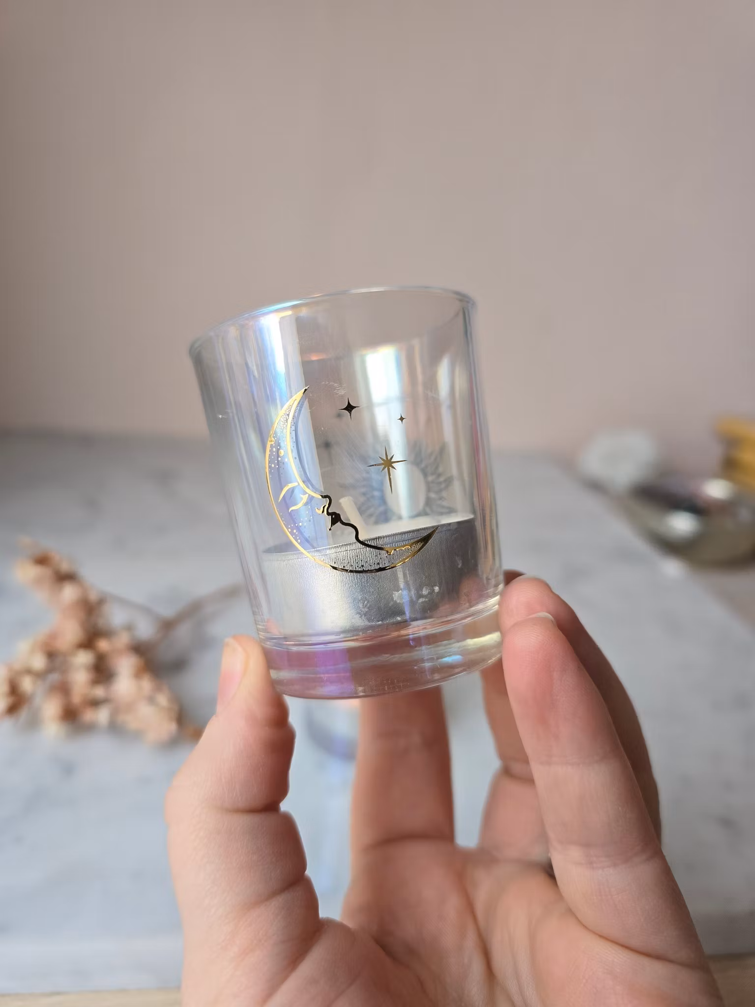 Ljuslykta måne/sol H 6.3cm 45 kr Tyvärr är denna produkten slutsåld, bevaka gärna så får du ett mail när/om produkten finns i lager igen. Produktbeskrivning & mer information Recensioner Superfin ljuslykta med sol på ena sidan & måne på andra.Höjd ca 6.3cm