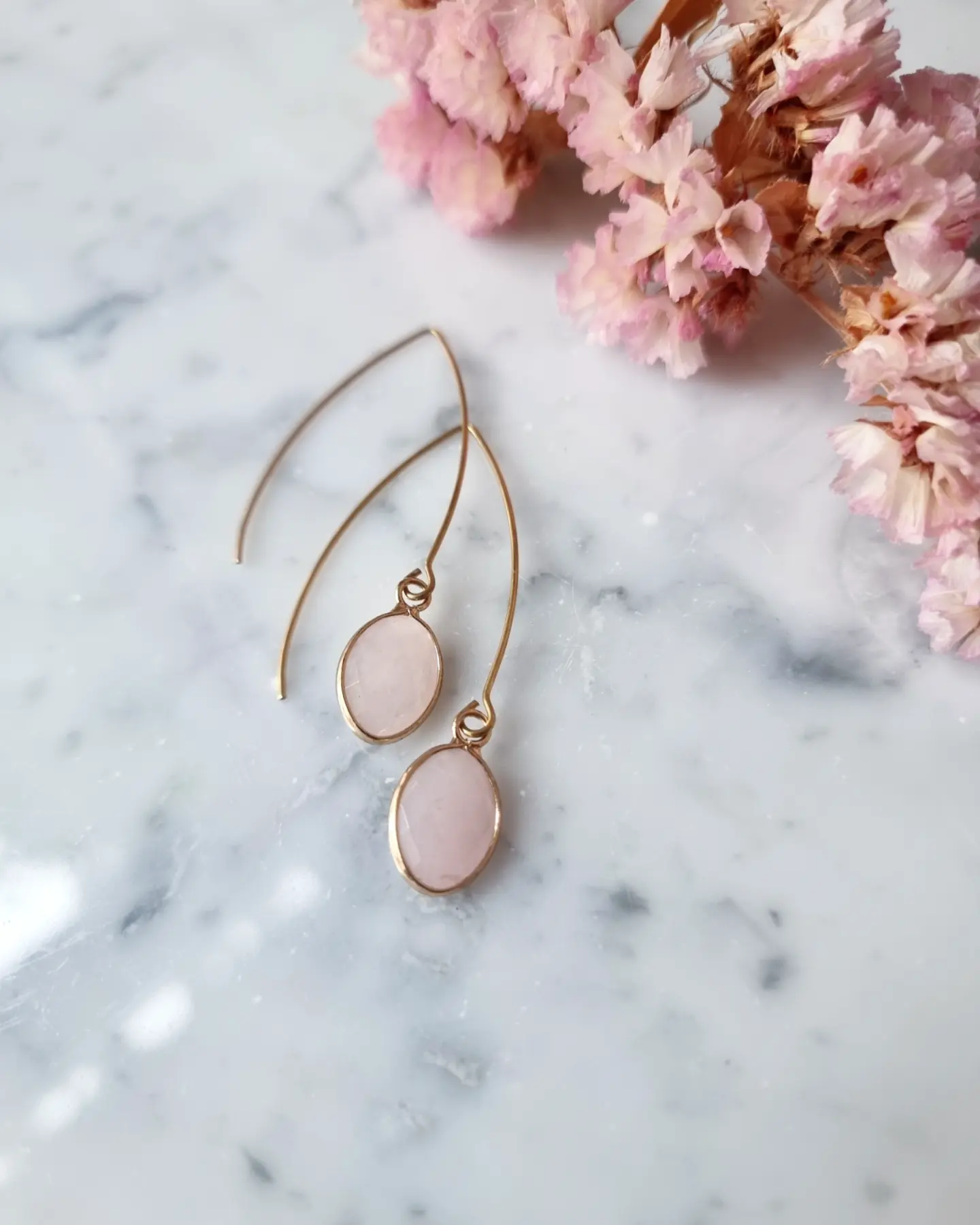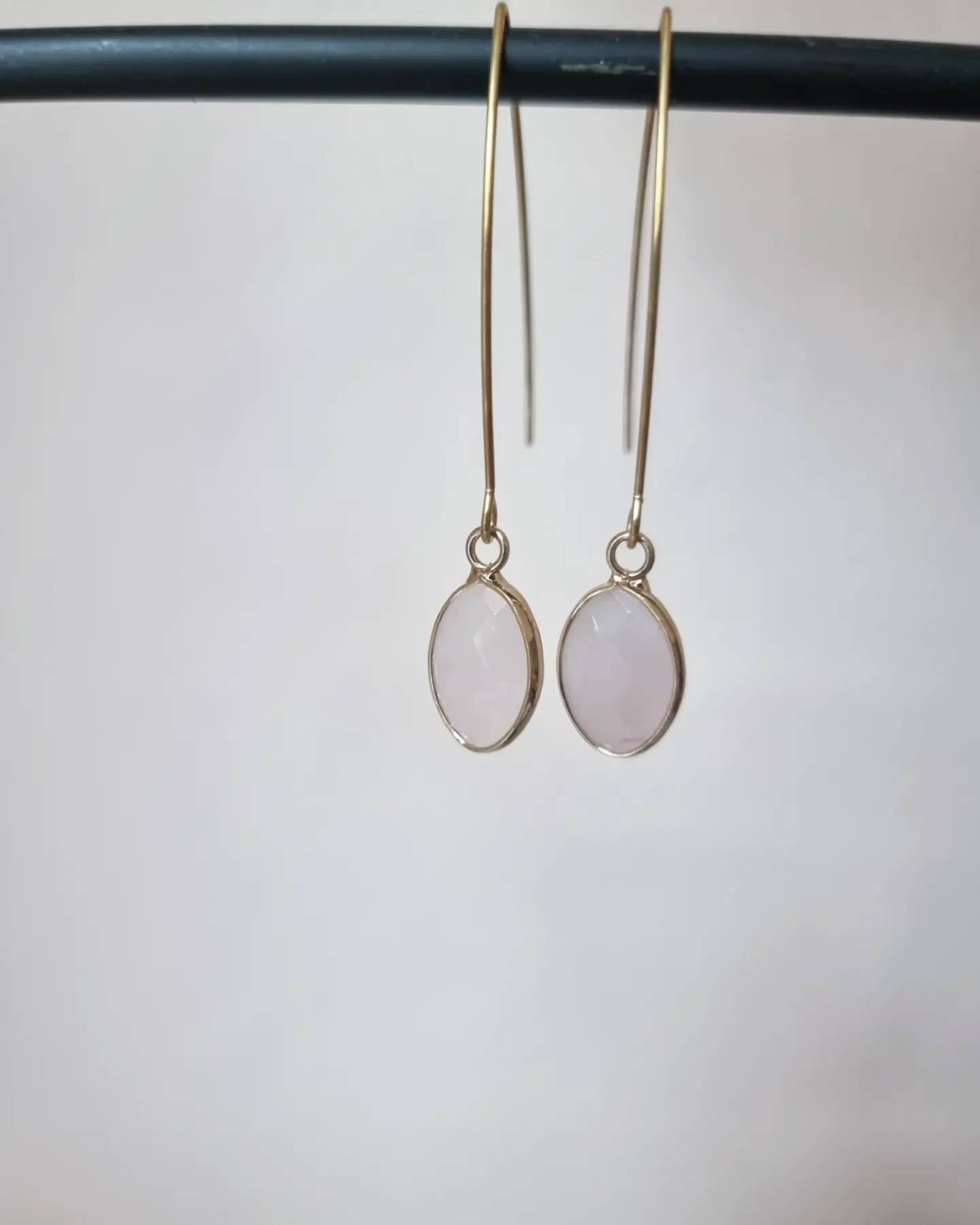 Vackra öehängeskrokar med facettslipad rosenkvarts, längd: ca 6.5cm