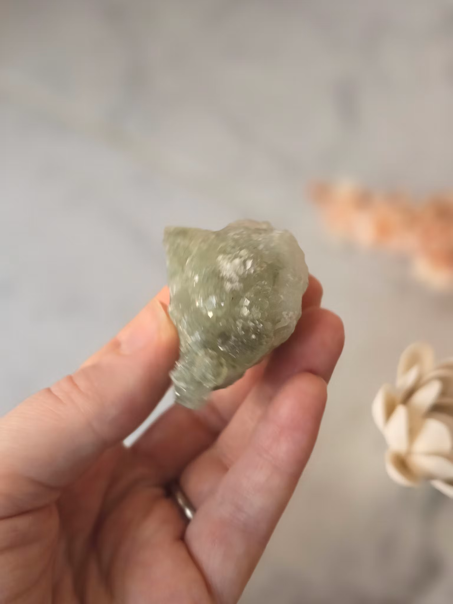 Prehnit, kluster nr P 100 kr Tyvärr är denna produkten slutsåld, bevaka gärna så får du ett mail när/om produkten finns i lager igen. Produktbeskrivning & mer information Recensioner Vackert kluster i kristalliserad prehnit