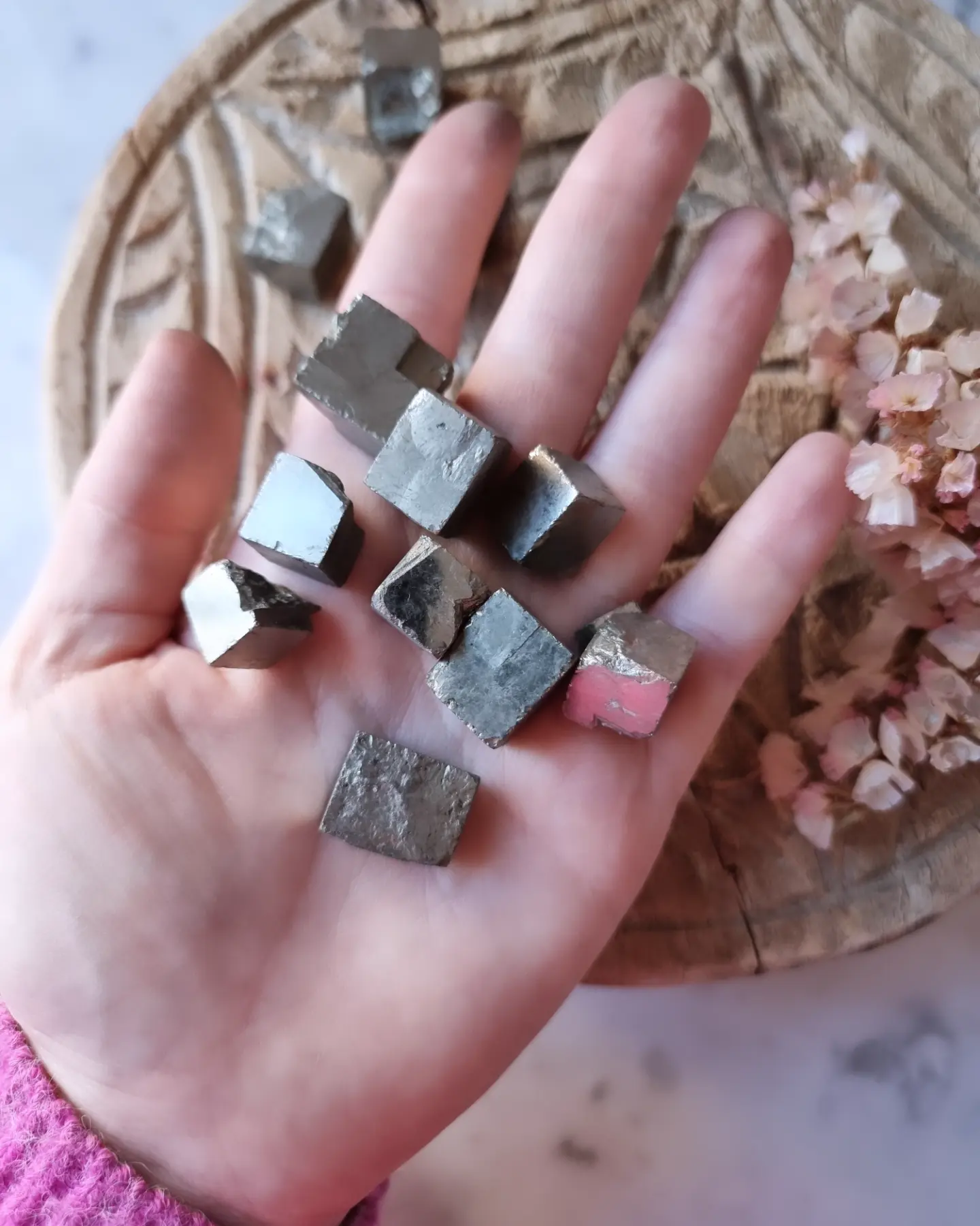 Helt naturliga pyritkuber från Spanien, ojämnheter förekommer naturligt enligt bild.