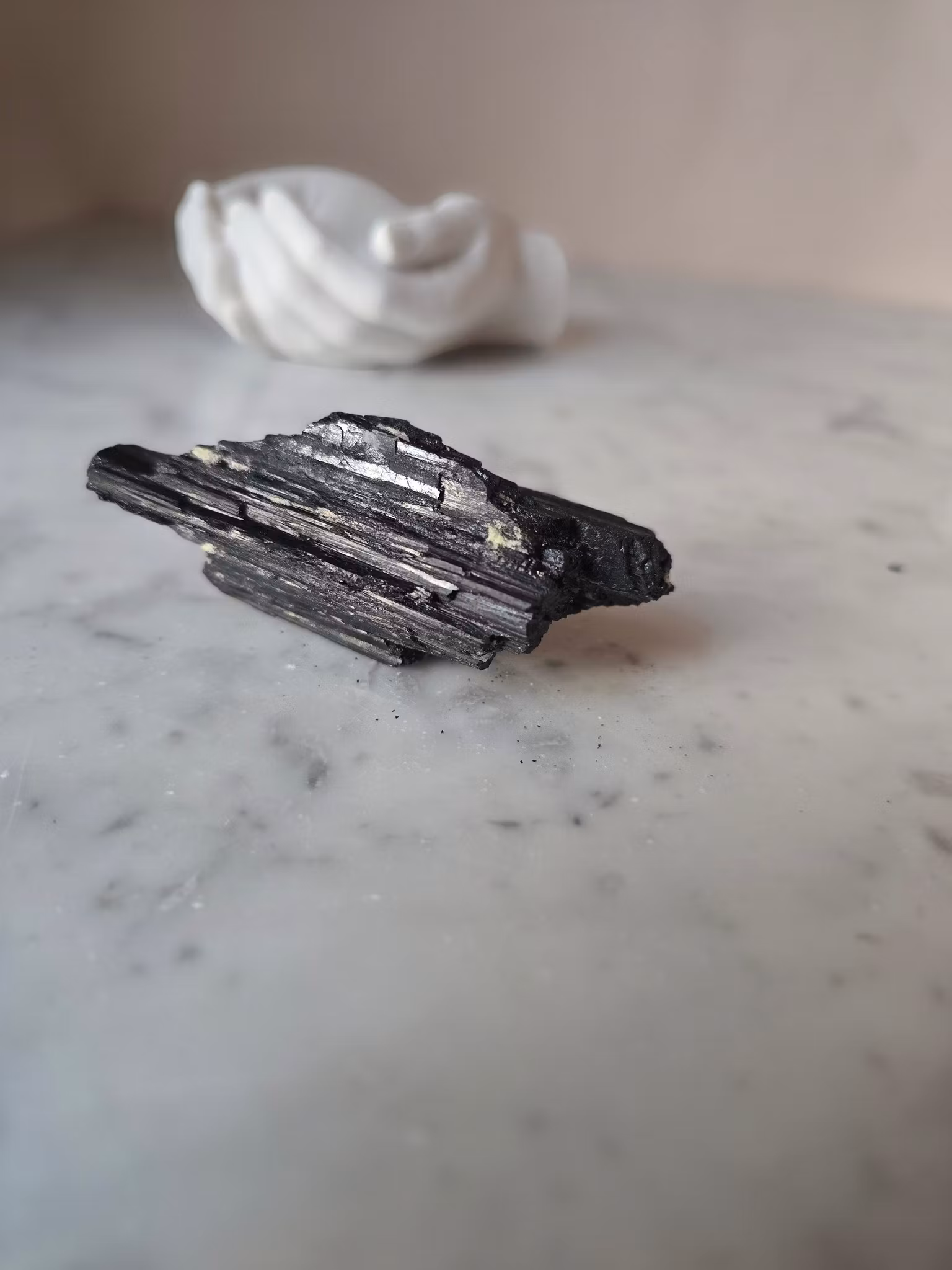 Den svarta turmalinen sägs vara starkt beskyddande och grundar oss väl. Den kan hjälpa oss att få kraften och styrkan tillbaka. Används ofta för att ruta in sitt hem, en turmalin läggs i varje ytterhörn av sitt hem för att skapa ett skyddande nät. Den sägs också vara bra att bära med sig för att skydda sin aura mot negativa energier. Renar och balanserar alla våra chakran.