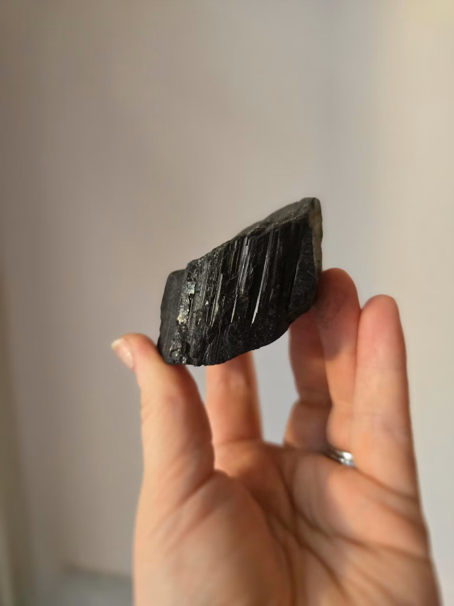 Den svarta turmalinen sägs vara starkt beskyddande och grundar oss väl. Den kan hjälpa oss att få kraften och styrkan tillbaka. Används ofta för att ruta in sitt hem, en turmalin läggs i varje ytterhörn av sitt hem för att skapa ett skyddande nät. Den sägs också vara bra att bära med sig för att skydda sin aura mot negativa energier. Renar och balanserar alla våra chakran.