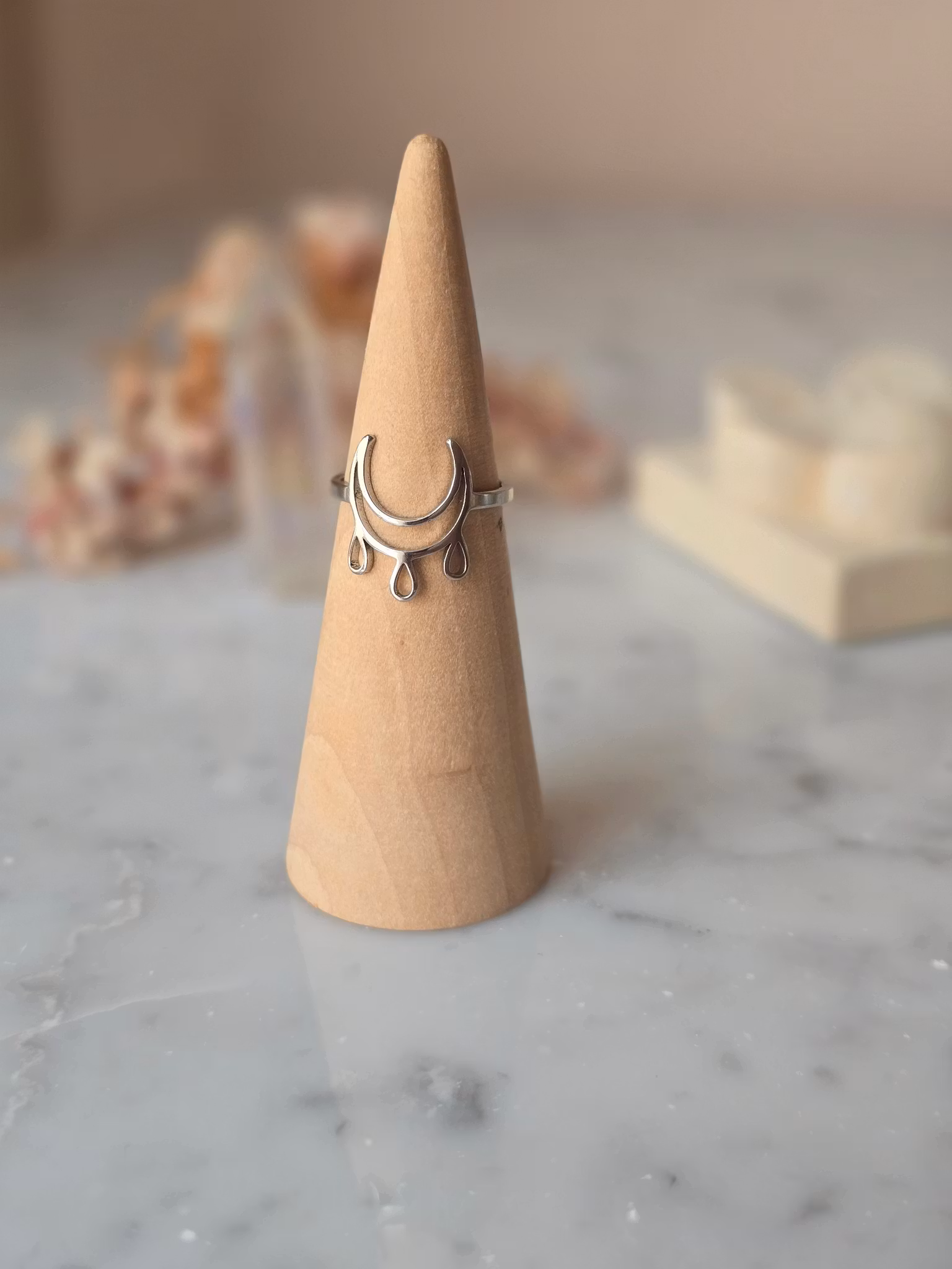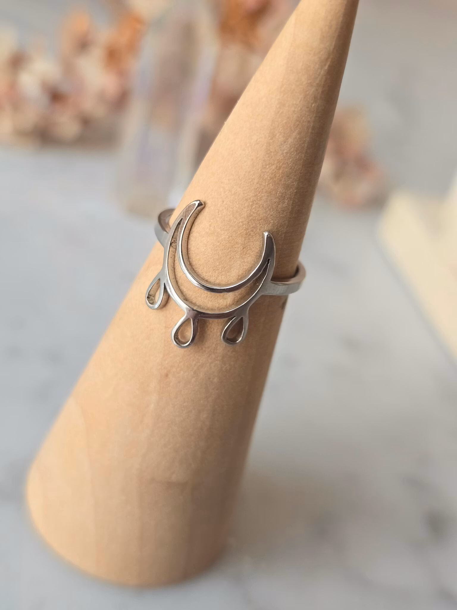 Ring med måne & droppar, rostfritt stål 49 kr Tyvärr är denna produkten slutsåld, bevaka gärna så får du ett mail när/om produkten finns i lager igen. Produktbeskrivning & mer information Recensioner Justerbar storlek.304 rostfritt stål