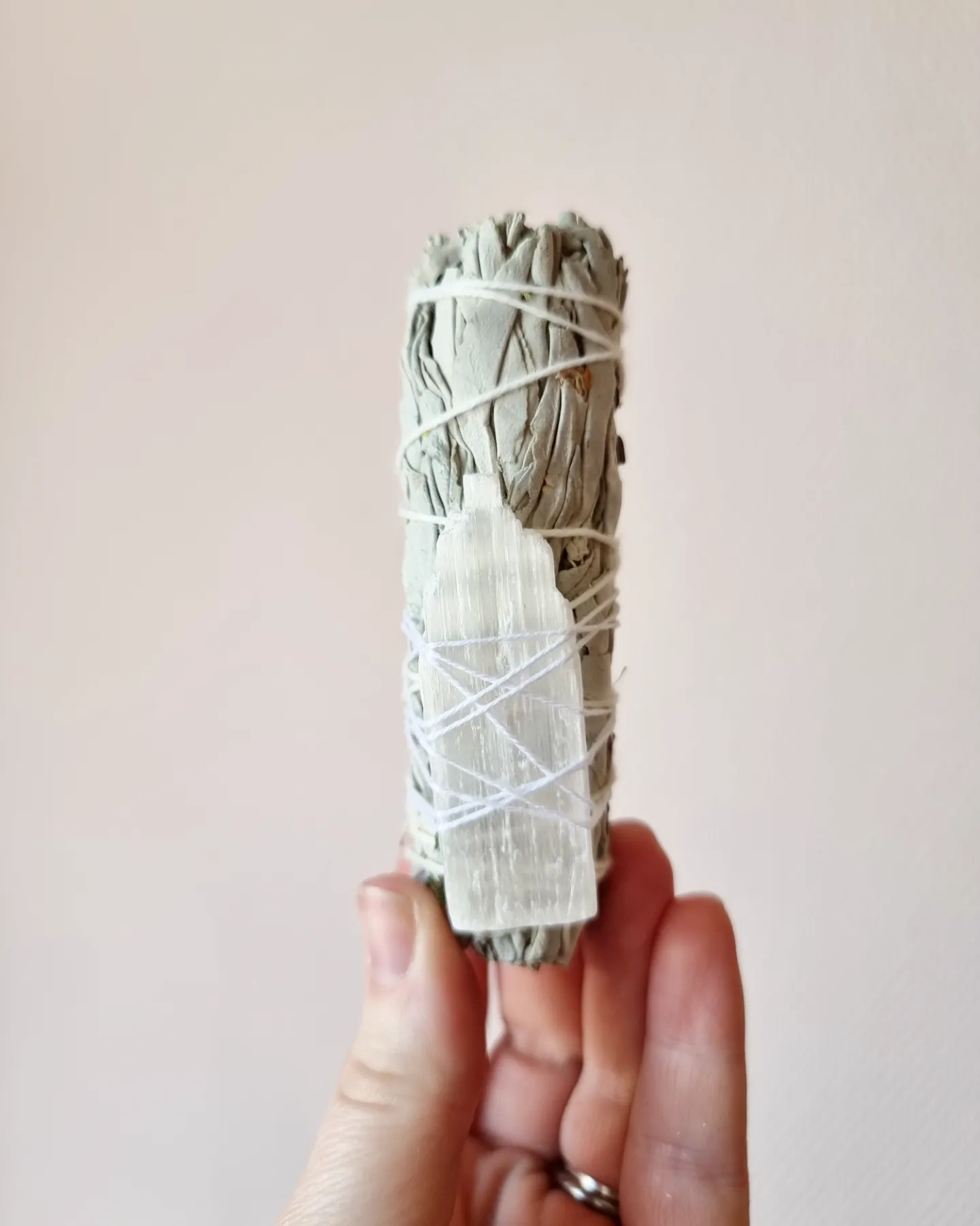 Selenit, eller Satin spar som den också kallas har en väldigt spröd vibration. Den sägs hjälpa oss att bli mer klarsynta, öppnar upp våra högre chakran och sägs då ge oss tillgång till kommunikation med änglar och vårt högre medvetande. Det är en starkt renande sten som skänker oss lugn och frid. Den hjälper oss även att se helheten och stärker vår aura. Då den är självrenande är den utmärkt att använda för att rena eller ladda andra kristaller.