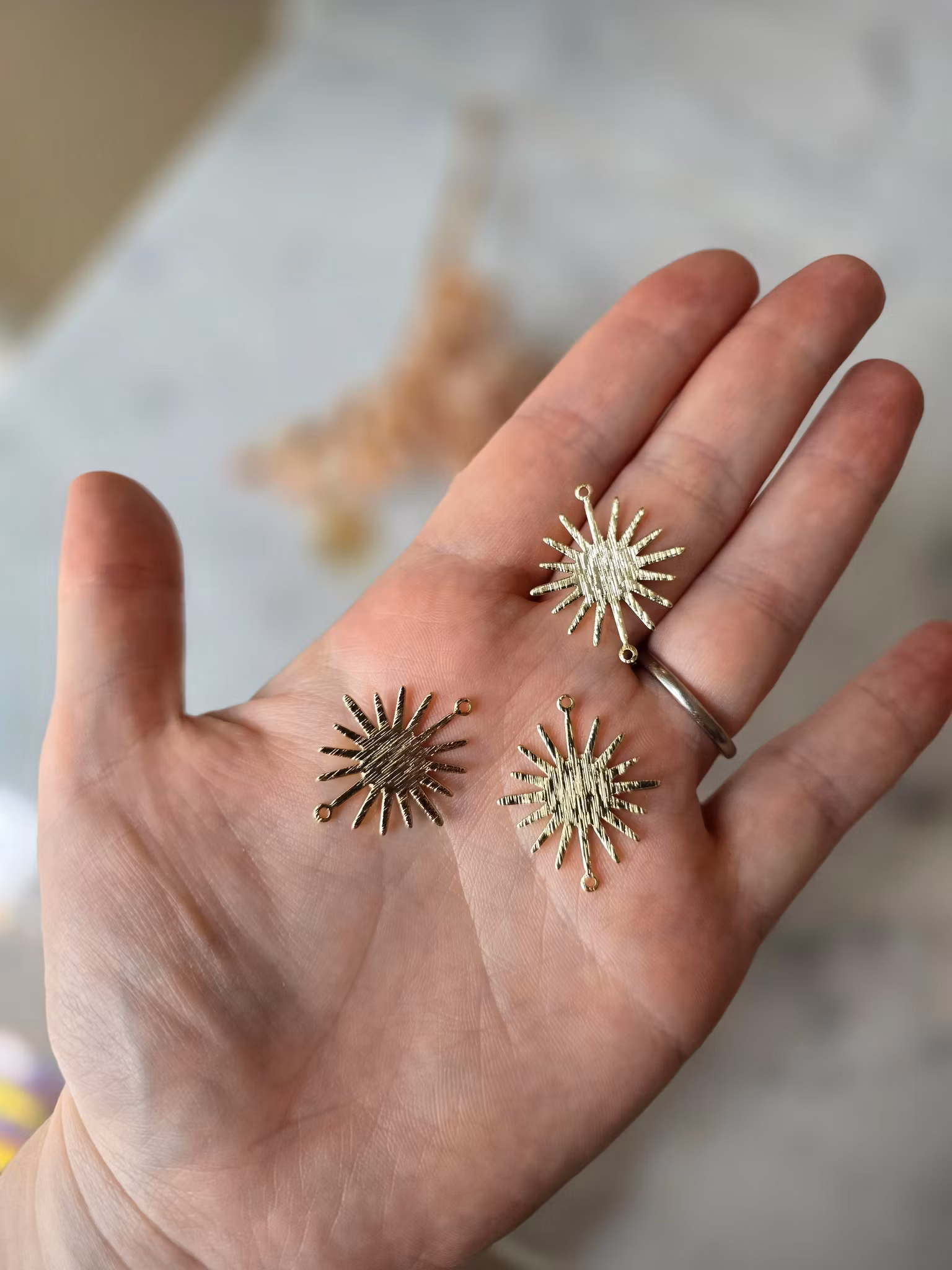 Sol "connector" ca 2.8cm 15 kr Tyvärr är denna produkten slutsåld, bevaka gärna så får du ett mail när/om produkten finns i lager igen. Produktbeskrivning & mer information Recensioner Guldpläterad metall.Priset avser 1 berlock.