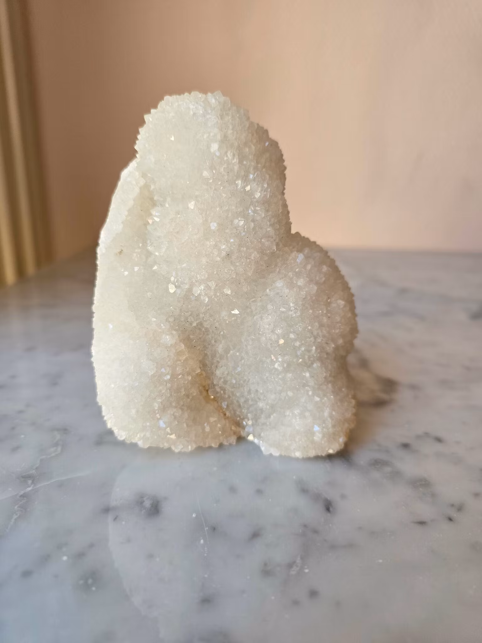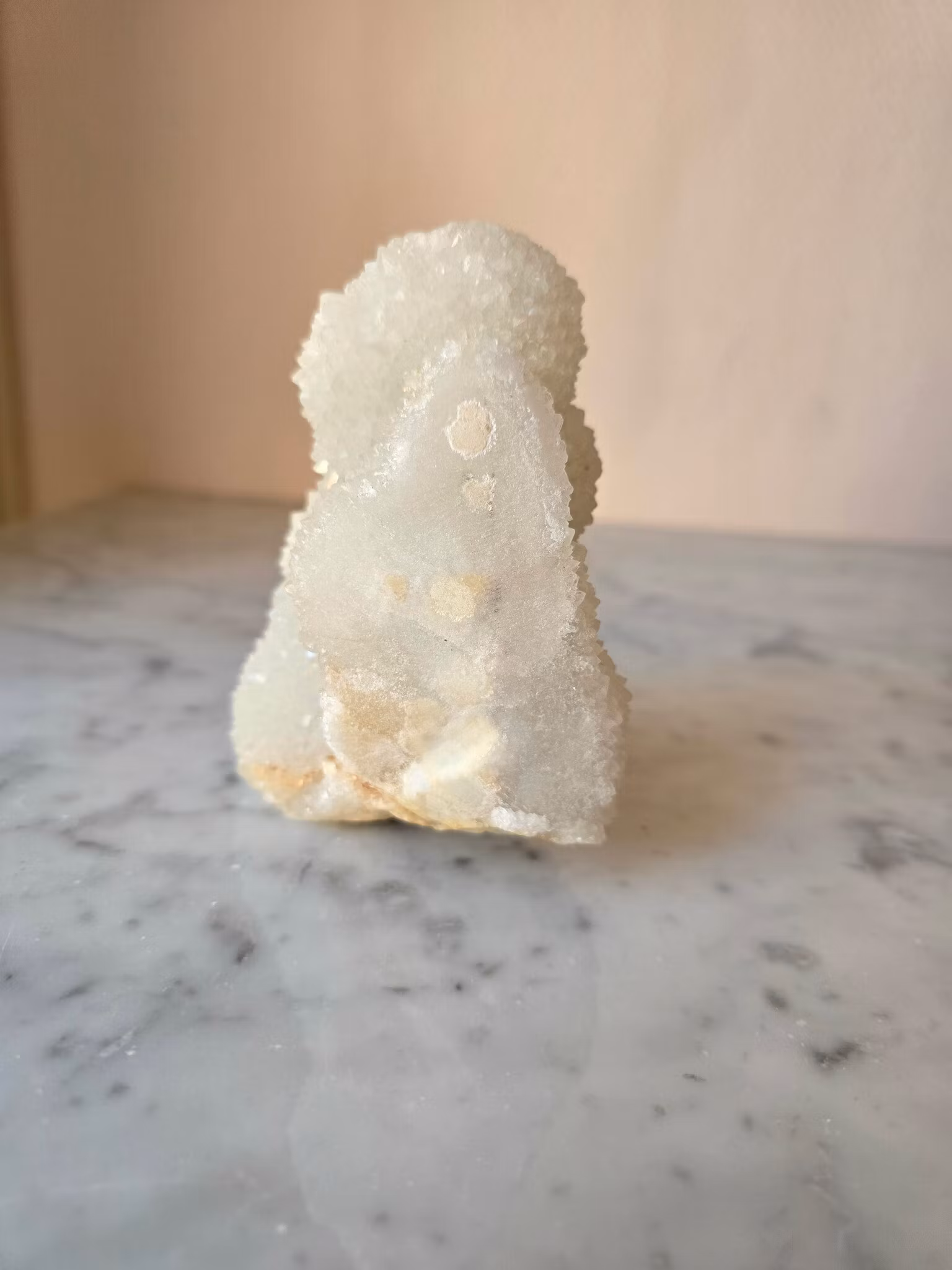 Så vacker stalaktit från Indien i Kalcedon med bergkristall. Så glittrig och fin.
