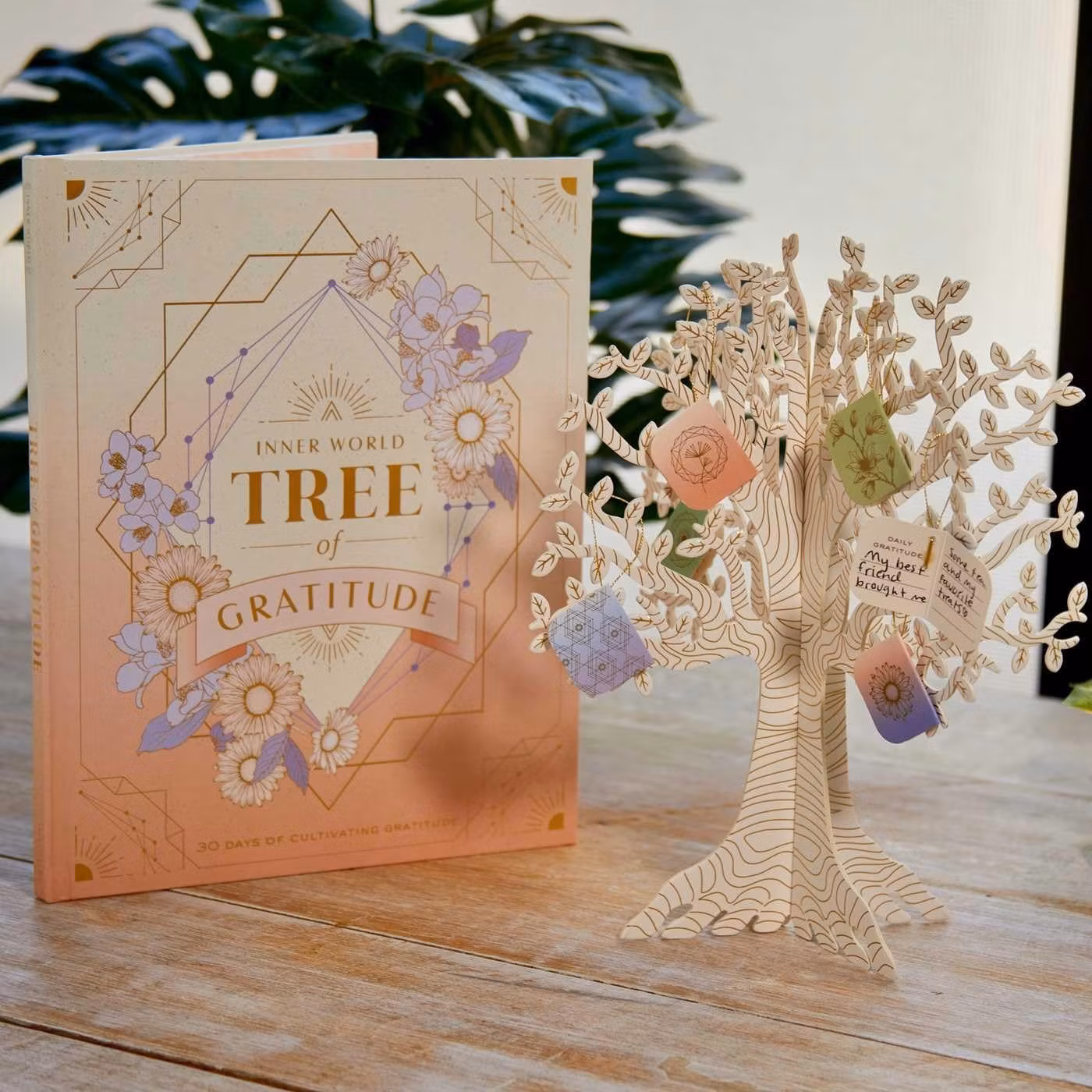 This unique and interactive activity encourages the cultivation of a daily practice of gratitude. Thirty removable daily gratitude tags encourage you to reflect and record your gratitude for the day, and then hang the prompt on a beautiful freestanding tree of life. Each gratitude tag is contained inside a pull-open window with an inspirational quote about gratitude and is to be opened one at a time over the course of 30 days.